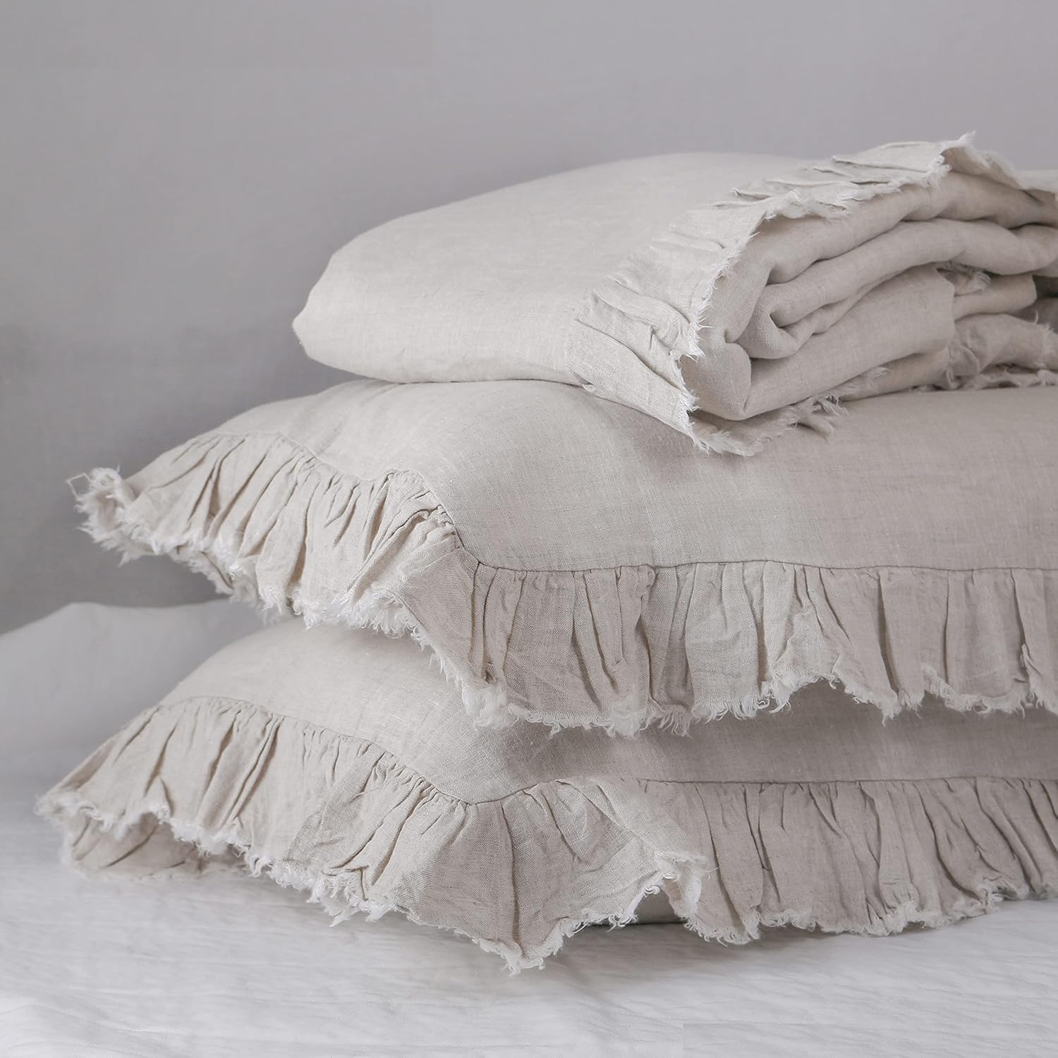 Amazon Com Simple Opulence 100 Linen Duvet Cover Set Queen Size 3pcs Shabby Chic Floral Frills Decorative Ruffles Belgian Flax Farmhouse Bedding Set Ultra Soft 1 Comforter Cover 2 Pillowshams 88 X92 Linen Home Kitchen